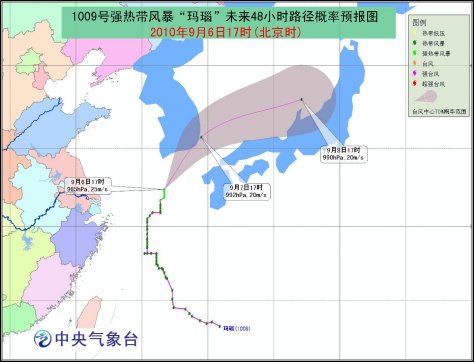 由于“瑪瑙”已遠(yuǎn)離我國近海,對(duì)我國海區(qū)的影響趨于減弱,因此解除臺(tái)風(fēng)藍(lán)色預(yù)警。但受“瑪瑙”、西南季風(fēng)和南下冷空氣的共同影響,9月6日20時(shí)到7日20時(shí),渤海灣、渤海海峽、黃海北部部分海域、黃海中部和南部的偏東海域、東海東北部、臺(tái)灣以東洋面將有6-8級(jí)大風(fēng),“瑪瑙”中心經(jīng)過的附近海域或地區(qū)的風(fēng)力可達(dá)9-10級(jí),陣風(fēng)11-12級(jí)。