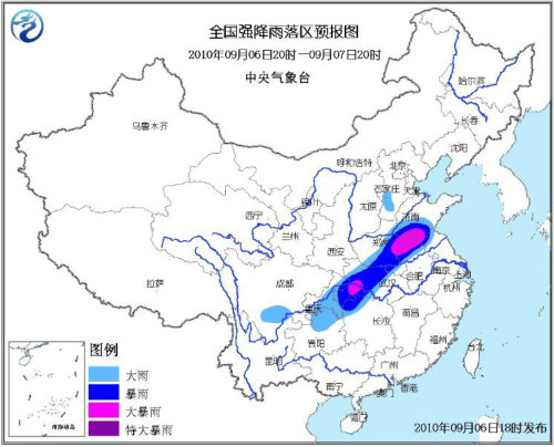 中新網(wǎng)9月7日電 據(jù)中國氣象局網(wǎng)站報道,6日,中國黃河流域到長江流域之間的大部分地區(qū)出現(xiàn)明顯降雨天氣。預計,6日夜間到7日白天,河南、安徽、江蘇及湖北局地將有大暴雨。
