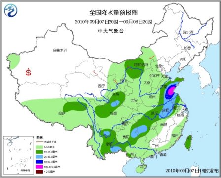 7日20時(shí)至8日20時(shí),新疆西南部、青海南部和東部、西藏中東部、西北地區(qū)中東部、內(nèi)蒙古中部偏西地區(qū)、華北大部、黃淮、江淮、江漢、江南中西部和北部、華南大部、西南等地有小到中雨或陣雨,其中山東中南部、安徽大部、江蘇北部和西部、湖北東部、湖南中部偏西地區(qū)、貴州東部、甘肅東南部、川西高原北部、云南東南部等地有大雨或暴雨;山東東南部和江蘇北部的局部地區(qū)有大暴雨;上述部分地區(qū)并伴有短時(shí)雷雨大風(fēng)等強(qiáng)對(duì)流天氣。內(nèi)蒙古中西部有4~6級(jí)風(fēng);南疆盆地的部分地區(qū)有揚(yáng)沙或浮塵天氣。臺(tái)灣海峽有5~7級(jí)東北風(fēng);臺(tái)灣以東洋面有6~8級(jí)大風(fēng);臺(tái)灣以南海域有5~7級(jí)旋轉(zhuǎn)風(fēng);南海東北部海域?qū)⒂?~7級(jí)偏西風(fēng)。另外,渤海、渤海海峽將有5~7級(jí)、陣風(fēng)8級(jí)的東北風(fēng)。