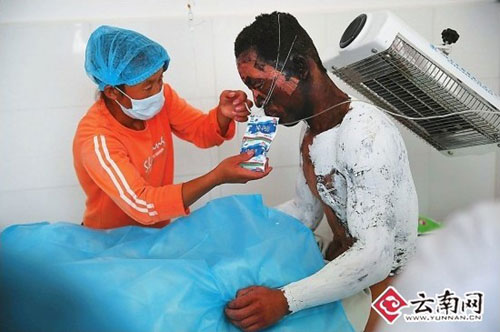 據(jù)瀘西縣人民醫(yī)院醫(yī)師彭銳介紹,12名傷者中4人是特重度燒傷,3人是重度燒傷,還有一個是燒傷的面積小、程度也較輕。另有3人是輕微燒傷,還有一人輕微骨折,正在骨外科接受治療。