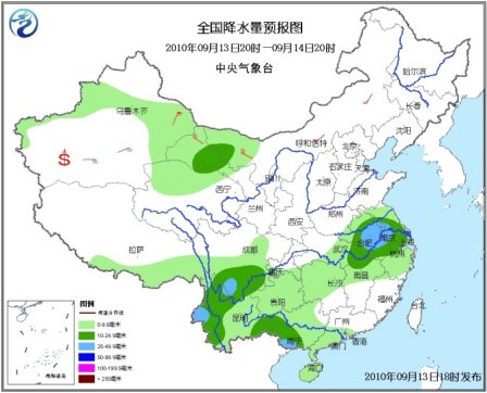 13日20時(shí)至14日20時(shí),新疆東部和沿天山一帶、西藏東南部、青海北部、甘肅西部、內(nèi)蒙古西部、黃淮南部、江淮、江漢東南部、江南中北部、華南西部和南部、川西高原中南部、四川盆地西部和南部、重慶南部、貴州、云南等地有小到中雨或陣雨,其中,安徽中南部、江蘇西南部、川西高原南部、云南西部、廣西西南部等地的部分地區(qū)有大雨;上述地區(qū)局部并伴有短時(shí)雷雨大風(fēng)或冰雹等強(qiáng)對(duì)流天氣。新疆大部、甘肅西部、內(nèi)蒙古中西部等地有4~6級(jí)風(fēng),新疆山口地區(qū)風(fēng)力可達(dá)7~9級(jí),南疆盆地的部分地區(qū)有揚(yáng)沙或浮塵天氣。渤海、黃海大部有4~5級(jí)西南風(fēng);東海大部、臺(tái)灣以東洋面、南海中南部有4~6級(jí)東南風(fēng);臺(tái)灣以南海域、南海北部有4~6級(jí)偏東風(fēng)。