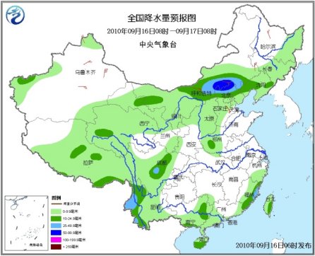 16日08時(shí)至17日08時(shí),新疆西北部和西南部山區(qū)、西藏大部、青海、甘肅中西部、寧夏、陜西北部、內(nèi)蒙古中西部和東南部、黑龍江東部、吉林大部、遼寧、華北大部、四川中西部、云南、廣西中南部和東部、廣東西部和東部、海南、浙江南部、福建中東部、臺(tái)灣等地有小到中雨或陣雨,其中,內(nèi)蒙古中部偏南地區(qū)、河北北部、云南西部等地有大雨,部分地區(qū)暴雨;上述地區(qū)局部并伴有短時(shí)雷雨大風(fēng)或冰雹等強(qiáng)對(duì)流天氣。新疆北部、甘肅西部、內(nèi)蒙古中東部、東北中北部等地的部分地區(qū)有4~6級(jí)風(fēng)。渤海有5~7級(jí)東北風(fēng);東海大部、臺(tái)灣海峽、臺(tái)灣以東洋面有4~6級(jí)東北風(fēng)。