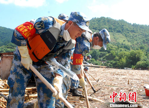 中新網(wǎng)高州9月26日電 (肖德倫 徐苗波)南海艦隊某陸戰(zhàn)旅在25日派出175名官兵、40輛工程車輛的基礎(chǔ)上,今天又增派200名陸戰(zhàn)隊員,緊急奔赴100多公里趕赴茂名市搶險救災(zāi)。