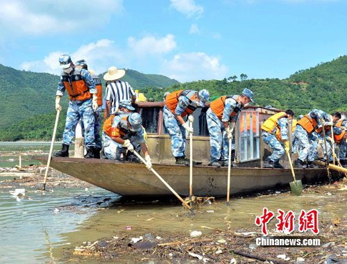 從昨夜開始,前期到達的部分官兵及工程車輛在高州重災(zāi)區(qū)馬貴鎮(zhèn),疏通道路、搜索失蹤人員、搶救物資;工兵分隊奔赴信宜市對危險山體進行爆破,部分陸戰(zhàn)隊員對廣東省第三大水庫高州水庫水面漂浮物進行清理。指揮員張文勝上校告訴筆者,目前工程機械分隊連夜打通長約1公里被泥石流堵塞的道路,清污的官兵已打撈起數(shù)十噸水面污染物,工兵分隊正在對爆破體進行前期論證。 完