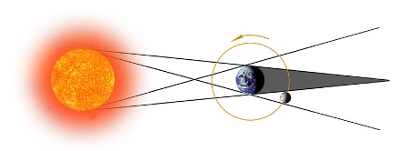 月食的過(guò)程和日食的過(guò)程有些不同。月球自西向東運(yùn)動(dòng),它在東邊緣先接觸地影,因此月食總是從月輪的東邊緣開始。與日全食一樣,月全食分為相同的5個(gè)階段(初虧、食即、食甚、生光、復(fù)圓),從食即到生光的全食時(shí)間長(zhǎng)達(dá)1小時(shí)以上。朝向月球的半個(gè)地球上見到的月食的時(shí)刻和情況完全一樣,正如舞臺(tái)上的燈泡漸暗至熄滅的過(guò)程,對(duì)于劇場(chǎng)內(nèi)的所有觀眾都是一樣,并且會(huì)同時(shí)看到。