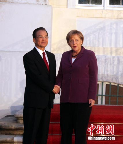 下午6時40分許,溫家寶抵達梅澤貝格宮,默克爾在主樓門前迎接,兩國總理緊緊握手。