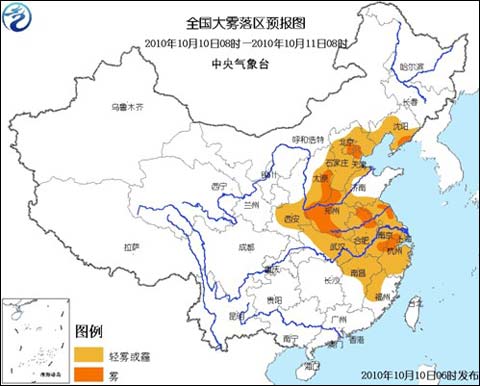 中新網(wǎng)10月10日電 據(jù)中國天氣網(wǎng)消息,中央氣象臺10月10日6時繼續(xù)發(fā)布大霧藍色預警: