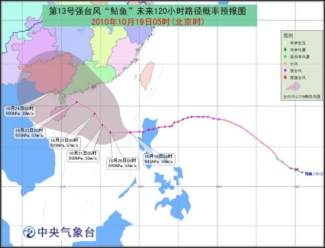 中新網(wǎng)10月19日電 中央氣象臺今早6時(shí)發(fā)布臺風(fēng)預(yù)警,今年第13號超強(qiáng)臺風(fēng)“鲇魚”以每小時(shí)10-15公里的速度繼續(xù)向偏西方向移動,強(qiáng)度將再次加強(qiáng)。