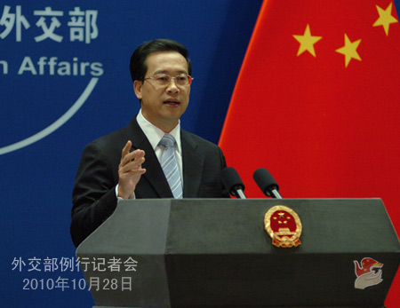 中新網(wǎng)10月28日電 據(jù)外交部網(wǎng)站消息,2010年10月28日,中國外交部發(fā)言人馬朝旭主持例行記者會。答問如下。