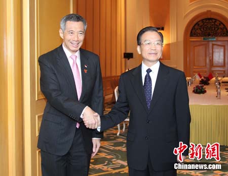 中新網(wǎng)河內(nèi)10月29日電 (記者 張朔)中國總理溫家寶29日在河內(nèi)會見新加坡總理李顯龍。