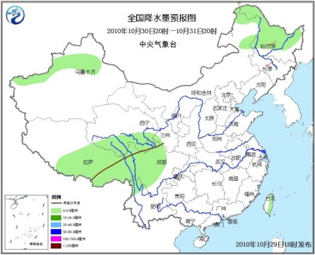 10月30日20時至31日20時,新疆沿天山地區(qū)、西藏東部、青海東南部、川西高原北部、內(nèi)蒙古東北部、黑龍江中北部有小雨(雪)或雨夾雪;四川中西部、云南西北部、臺灣東部等地的部分地區(qū)有小雨或陣雨。內(nèi)蒙古東部、東北中北部、華南沿海等地有4~6級風。臺灣海峽、臺灣以東洋面和以南海域、南海東北部海域、中部和西南部海域?qū)⒂?~8級、陣風9級的東北風。另外,黃海南部海域、東海北部海域?qū)⒂?~6級的偏北風;東海南部海域?qū)⒂?~7級、陣風8級的東北風;南海西北部海域、北部灣將有5~7級的東北風。