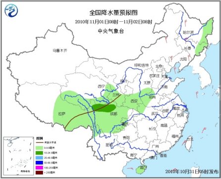 中新網(wǎng)10月31日電 據(jù)中央氣象臺預(yù)報,未來三天,中國大部地區(qū)為晴好天氣。新疆西部、青海南部、西藏中東部、西北地區(qū)東部、西南地區(qū)中北部、內(nèi)蒙古東北部、黑龍江北部和東部、吉林東部等地有小雨(雪)天氣。