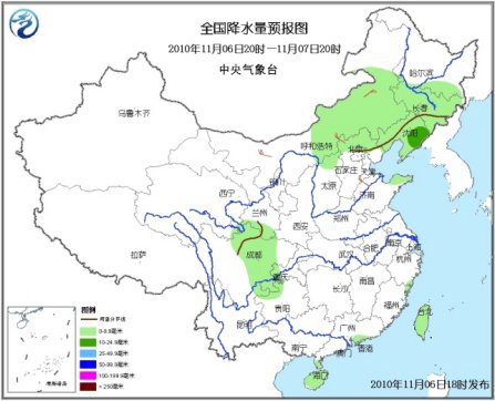 6日20時至7日20時,甘肅南部、川西高原東北部、內(nèi)蒙古中部和東部偏南地區(qū)、東北地區(qū)中南部、華北北部等地有小到中雨(雪)或雨夾雪;四川盆地大部、重慶西南部、貴州西北部、福建東北部、廣東珠江三角洲地區(qū)、海南、臺灣等地有小到中雨或陣雨。內(nèi)蒙古中東部、東北地區(qū)、華北等地有4~6級風(fēng)。渤海、黃海北部將有4~6級西南風(fēng)轉(zhuǎn)7~8級、陣風(fēng)9~10級的西北風(fēng)。東海南部、南海西北部和南部、北部灣將有4~6級東北風(fēng);臺灣海峽、臺灣以東洋面和以南海域、南海東北部和中部海域?qū)⒂?~7級、陣風(fēng)8級的東北風(fēng)。