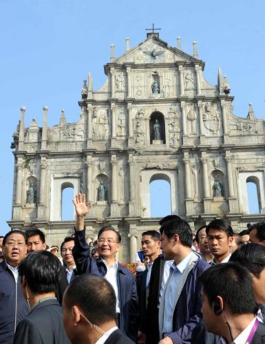 14日,溫家寶在澳門(mén)特別行政區(qū)行政長(zhǎng)官崔世安的陪同下,先后參觀澳門(mén)大炮臺(tái)、澳門(mén)博物館、大三巴牌坊,考察了澳門(mén)生產(chǎn)力暨科技轉(zhuǎn)移中心、澳門(mén)工聯(lián)北區(qū)綜合服務(wù)中心、仁伯爵綜合醫(yī)院、澳門(mén)大學(xué)等機(jī)構(gòu),看望澳門(mén)廣大市民,和大家真情互動(dòng),深切了解澳門(mén)歷史和經(jīng)濟(jì)、社會(huì)發(fā)展情況。他還走訪市民家庭,了解澳門(mén)普通居民的生活現(xiàn)狀。