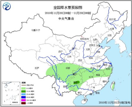 28日08時(shí)至29日08時(shí),江南北部、西南地區(qū)東部等地有小雨,局部地區(qū)有中雨。