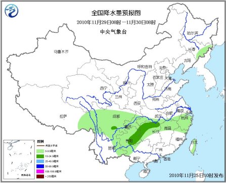 12月1日08時(shí)至2日08時(shí),內(nèi)蒙古東北部有小到中雪,貴州、四川南部等地有小雨。