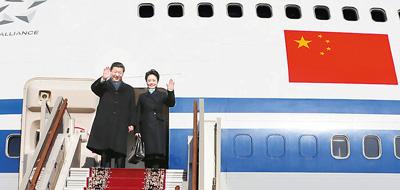 中國國家主席習近平和夫人彭麗媛首次出訪俄羅斯!⌒氯A社記者 蘭紅光攝