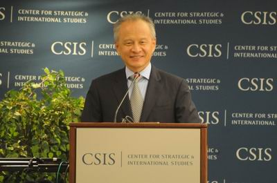 中新網(wǎng)5月25日電 據(jù)外交部網(wǎng)站消息,2013年5月22日,駐美國(guó)大使崔天凱出席美國(guó)戰(zhàn)略與國(guó)際問題研究中心舉辦的“未來十年的中美經(jīng)貿(mào)關(guān)系:邁向更加合作與雙贏之路”研究報(bào)告發(fā)布儀式午餐會(huì)并發(fā)表主旨演講。崔天凱指出,中美構(gòu)建新型大國(guó)關(guān)系并非從零開始,可以說,中美新型大國(guó)關(guān)系的基本框架已在逐步成形。
