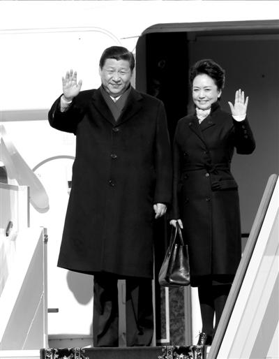 3月29日,習(xí)近平與彭麗媛抵達剛果共和國首都布拉柴維爾。新華社發(fā)
