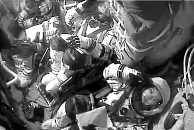 由于失重飄浮,航天員行動(dòng)起來(lái)不像在地面上那樣自如,坐立不穩(wěn)搖搖晃晃,稍一抬頭仰身就有可能來(lái)個(gè)大翻身,彎腰時(shí)又可能翻筋斗,所以一切動(dòng)作都得小心翼翼。