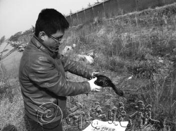 志愿者后來又在草叢中找到了兩只已經(jīng)死亡的鵲鴨。一上午的時間,志愿者共發(fā)現(xiàn)了11只渾身油污的鳥,其中有6只死亡。當(dāng)日下午,志愿者在賓館用各種方法,甚至用了洗發(fā)水,但油污就像瀝青一樣粘稠,無法清理干凈,在這個過程中,又有3只鳥死亡。