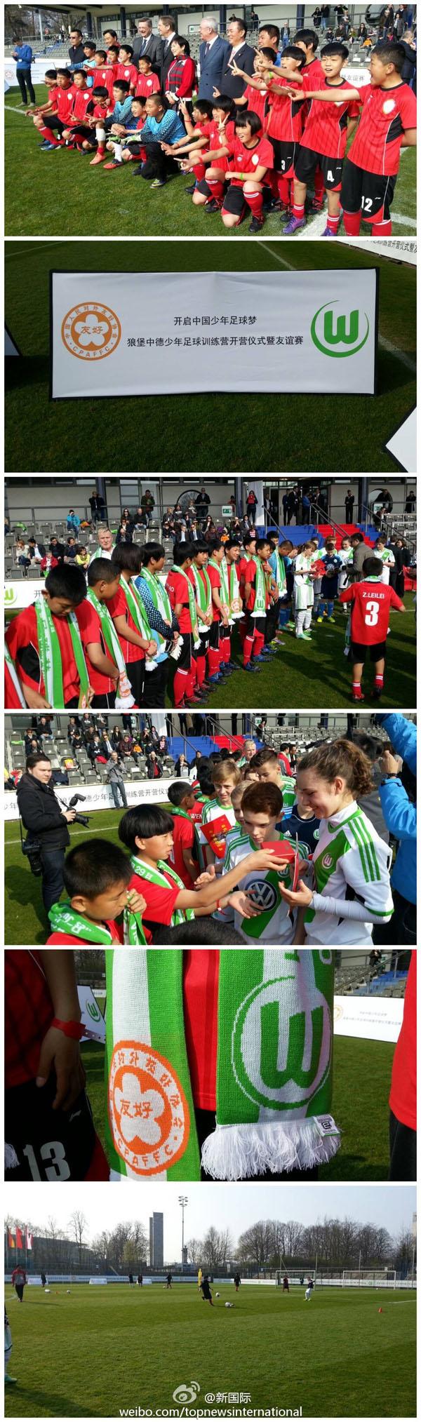 據(jù)新華社“新國際”微博報(bào)道,3月29日,習(xí)近平主席和夫人彭麗媛看望在德國參加訓(xùn)練的志丹少年足球隊(duì)隊(duì)員,并觀看他們的比賽;顒(dòng)前,中德的青少年隊(duì)員合影,交換禮物。(新華社記者錢彤?dāng)z)