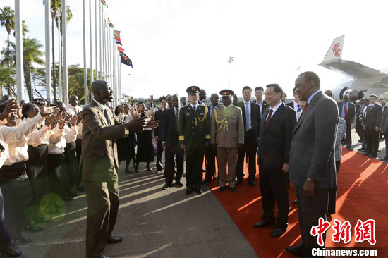 離開肯尼亞時,肯尼亞總統(tǒng)肯雅塔夫婦和副總統(tǒng)魯托到機(jī)場送行,機(jī)場舉行了隆重的歡送儀式。
