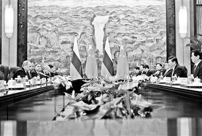 習(xí)近平指出,中俄合作是全方位、多層次的。雙方要再加把勁,努力實現(xiàn)2015年前雙邊貿(mào)易額達到1000億美元的目標。對中俄務(wù)實合作,我們既推動量的提升,也重視質(zhì)的跨越,通過建立中俄投資合作委員會、高級別專項小組等機制,推進經(jīng)貿(mào)、投資、能源、高技術(shù)、航空航天、基礎(chǔ)設(shè)施建設(shè)、民生等領(lǐng)域戰(zhàn)略性大項目合作。要對接絲綢之路經(jīng)濟帶和俄羅斯跨歐亞鐵路建設(shè),拉動兩國經(jīng)貿(mào)往來和毗鄰地區(qū)開發(fā)開放,共享歐亞大通道和歐亞大市場。