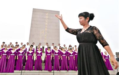 為紀念全民族抗戰(zhàn)爆發(fā)77周年,昨天下午六點,由北京市委宣傳部主辦,豐臺區(qū)委、豐臺區(qū)政府承辦的“勿忘國恥,圓夢中華”首都各界群眾歌詠活動在中國人民抗日戰(zhàn)爭紀念雕塑園中心廣場內(nèi)舉行。 新京報記者 李禹潼 薛珺 攝影報道