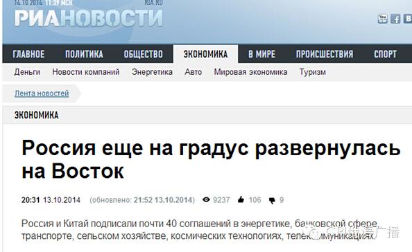 普京下令組建的“今日俄羅斯”國際新聞通訊社:對李總理訪問俄羅斯的成果進行了全面梳理與介紹,其中說道,“中俄簽署了將近40項合作協(xié)議,涉及能源、金融、交通、航空航天等多個領域,這顯示出,中俄合作又向前跨一大步,俄羅斯向東再轉一度”。