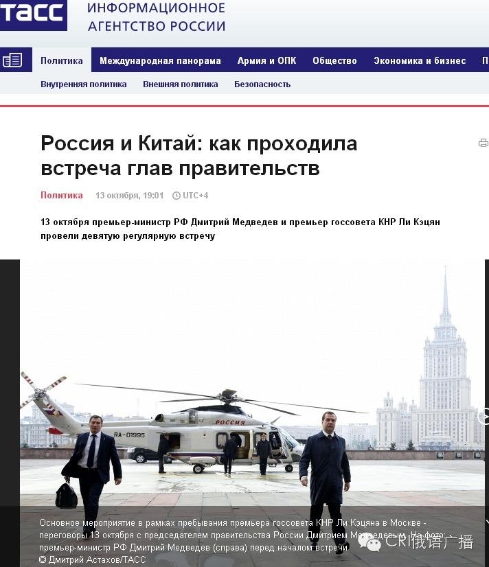 俄羅斯三大通訊社之一俄通社-塔斯社:用10張照片回顧和總結了李克強總理的莫斯科之行。