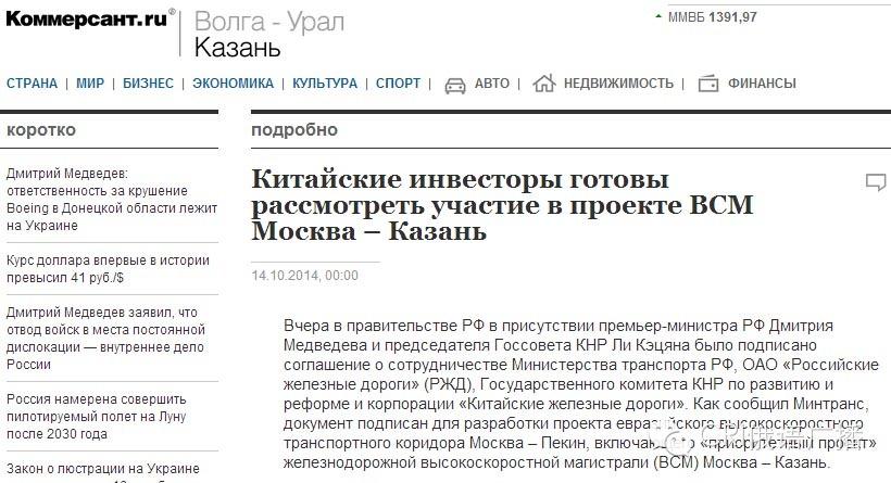 俄羅斯主要商業(yè)化報紙之一“生意人報”:中國參與俄羅斯的高鐵項目,這是李總理訪問期間最受關注的話題之一。如果連接中國、俄羅斯和哈薩克斯坦的高速鐵路網(wǎng)建設順利推進,將極大促進“絲綢之路經(jīng)濟帶”戰(zhàn)略的實施。
