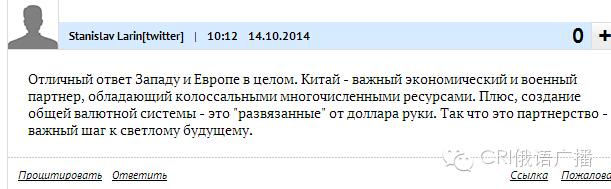 網(wǎng)友馬克西莫娃評論說:“下一步就該和美元說再見了!我非常高興地看到,俄羅斯與中國致力于長期合作。中國將在眾多領域取代美國,我們將擺脫美國的羈絆。美利堅再也不可能把我們踩在腳下了,因為向我們施壓的工具已經(jīng)失效。”