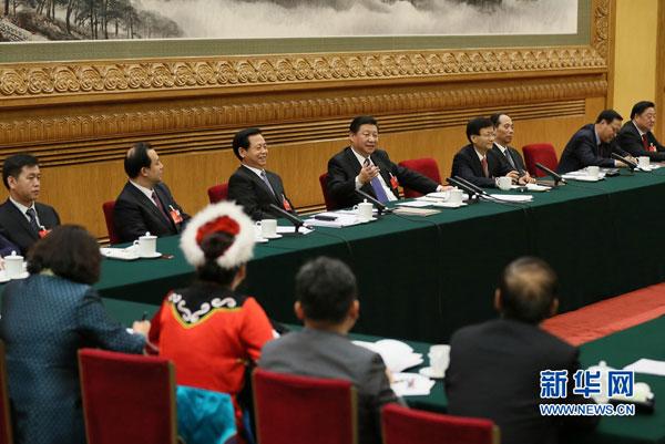 3月7日,中共中央總書記、國(guó)家主席、中央軍委主席習(xí)近平參加十二屆全國(guó)人大四次會(huì)議黑龍江代表團(tuán)的審議。 新華社記者 蘭紅光 攝