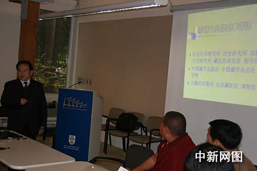 與加拿大的大學和研究機構(gòu)進行學術(shù)交流是代表團此行的主要目的。今天上午,代表團來到位于溫哥華的不列顛哥倫比亞大學,與該校亞洲研究院從事藏學研究的教授和博士、碩士研究生進行學術(shù)座談。代表團成員逐一介紹了所在機構(gòu)的情況以及各自研究的領(lǐng)域。