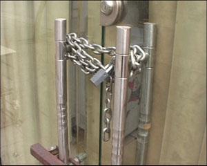 紀(jì)委白天黑夜不定時(shí)地檢查,讓整個(gè)縣城的高檔餐飲行業(yè)心驚肉跳。在城中心,曾經(jīng)最高檔、生意也最好的三義美食貴賓樓受到的沖擊最大,這個(gè)曾經(jīng)是創(chuàng)業(yè)示范崗的酒店在這次紀(jì)檢風(fēng)暴中慘遭淘汰,記者看到的時(shí)候它已經(jīng)關(guān)門了。而且記者發(fā)現(xiàn)縣城里相繼關(guān)門的酒店還有很多家,都大門緊鎖,門口也都貼上了轉(zhuǎn)讓的告示。
