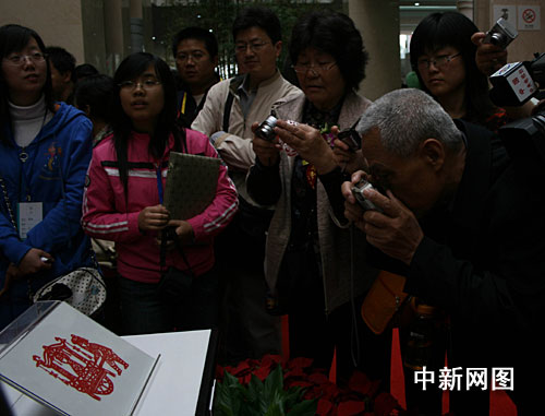 當(dāng)日的湖北省藝術(shù)館人山人海。作為本次展覽的亮點(diǎn),《回娘家》吸引了全國各地的剪紙藝術(shù)愛好者和普通市民以及海外友人踴躍參觀。他們有的仔細(xì)端詳,有的拿起手中相機(jī)拍照,有的還在作品展柜前合影留念。觀眾中,還有一些特殊的客人:同胡錦濤總書記一起剪紙的甘肅省定西市青嵐鄉(xiāng)大坪村村民李宏偉和冉菊英夫婦,以及中共湖北省委書記羅清泉等黨政官員。