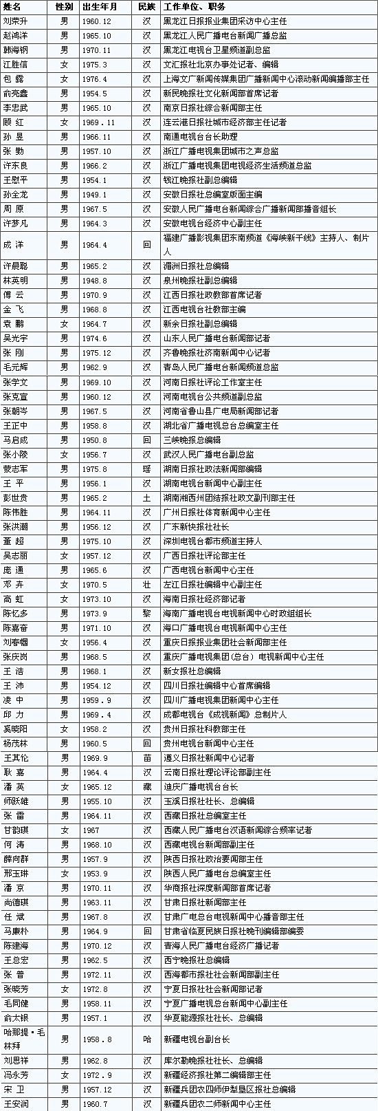 2007年全國優(yōu)秀新聞工作者名錄(下)