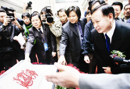 張樹賢介紹,當(dāng)他在電視畫面上看到胡錦濤總書記剪窗花的情形時(shí),就想到要在湖北舉行的第二屆全國剪紙藝術(shù)展,希望把胡錦濤總書記的剪紙“請”到湖北來展出。與定西方面商量后,定西市剪紙協(xié)會同意將《回娘家》剪紙“借來”湖北展出,再還回去。