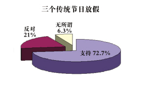 昨天,國家法定節(jié)假日調(diào)整方案在新華網(wǎng)、人民網(wǎng)、國家發(fā)改委網(wǎng)站以及新浪、搜狐等網(wǎng)站上公布并征求社會(huì)各界調(diào)查后引起強(qiáng)烈反響。首日調(diào)查結(jié)果顯示,至少七成網(wǎng)民支持國家調(diào)整法定節(jié)假日。