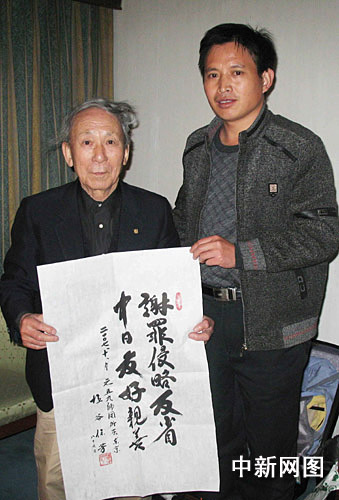 原日本侵華日軍59師團(tuán)45中隊(duì)退伍老兵鹽谷保芳日前再次來到中國(guó)山東泰安抗日烈士陵園謝罪,并向陵園敬獻(xiàn)了“謝罪侵略反省,中日友好親善”牌匾,以特殊方式傳達(dá)日本人民致力中日友好的信息。
