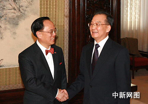 中新網(wǎng)北京11月23日電 (記者 孫宇挺)國(guó)務(wù)院總理溫家寶23日下午在中南海會(huì)見來(lái)京述職的香港特別行政區(qū)行政長(zhǎng)官曾蔭權(quán)。