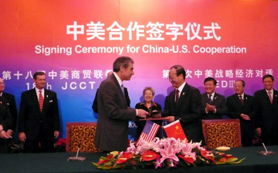 中美關(guān)于便利中國(guó)旅游團(tuán)隊(duì)赴美旅游諒解備忘錄的簽署,是落實(shí)今年5月第二次中美戰(zhàn)略經(jīng)濟(jì)對(duì)話(huà)期間兩國(guó)政府簽署的《關(guān)于旅游的聯(lián)合聲明》的重大舉措,是第十八屆中美商貿(mào)聯(lián)委會(huì)和第三次中美戰(zhàn)略經(jīng)濟(jì)對(duì)話(huà)的共同成果,標(biāo)志著美國(guó)已正式成為中國(guó)公民組團(tuán)出境旅游目的地國(guó)家。