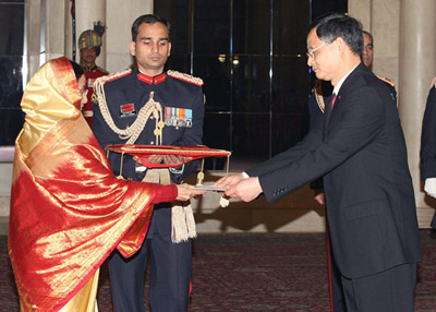 中新網(wǎng)12月19日電 據(jù)中國(guó)外交部網(wǎng)站消息:中國(guó)新任駐印度特命全權(quán)大使張炎18日下午向印度共和國(guó)總統(tǒng)普拉蒂巴•帕蒂爾遞交了國(guó)書。