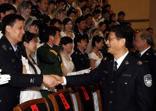 “從相知相愛到走進(jìn)婚姻的殿堂,這是人生中最為幸福的時刻,也是人生中一個新的起點(diǎn)。我代表公安部黨委祝福新人們幸福無比,比翼雙飛,白頭偕老。”孟建柱向就要走進(jìn)幸福殿堂的新人們送上真誠的祝福,并與他們合影。