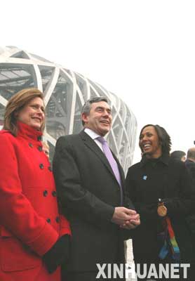 正在中國(guó)訪問(wèn)的英國(guó)首相布朗19日上午參觀了“鳥巢”。陪同布朗參觀的有他的夫人薩拉·布朗和英國(guó)運(yùn)動(dòng)員、雅典奧運(yùn)會(huì)冠軍凱利·霍爾姆斯等訪華隨行人員。