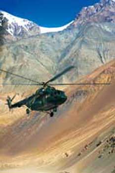 “最難飛到的是什布奇邊防連”,飛行員說。這個距離首都最遠的邊防連處于四周全是高山的山谷中,直升機降落時要慢慢地像片樹葉掉下去,起飛時又盤旋著上升高度,小心翼翼地防止旋翼觸到大山上。