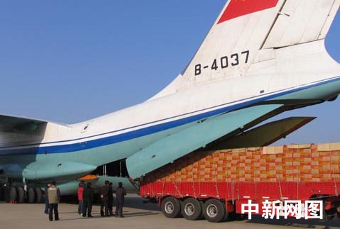 據(jù)介紹,此次運送的救災物資是由石家莊藁城市燃亮蠟燭廠加班生產(chǎn)的,共計約120噸,是由商務部緊急組織、河北省商務廳協(xié)助辦理的,石家莊機場負責物資裝卸及相關(guān)保障工作。承擔運送物資的三架伊爾—76運輸機,一架為中國聯(lián)航,另兩架為中國空軍所屬。