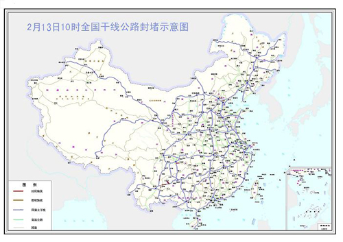 受昨日凍雨影響,云南省昭通至嵩明高速公路迤車至會澤、待補至龍?zhí)抖?可繞行G213),曲靖至勝境關高速公路(可繞行G320),曲靖至陸良高速公路封閉,預計今日下午14時開通;貴州省鎮(zhèn)寧至勝境關高速公路劉官至勝境關段(可繞行G320),鎮(zhèn)寧至水城高速公路(可繞行S102)封閉,預計今天中午12時開通。