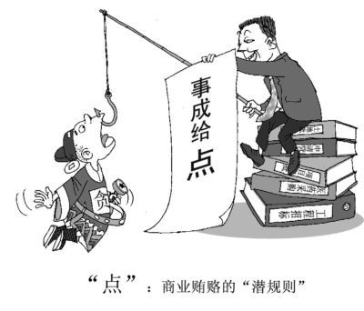 “點”即在經濟活動中按照一定的比例給予的提成、回扣、好處。據分析,不少官員是在市場經濟的大潮中被淹沒的,一些行賄者往往事先向一些官員許諾,事成后給多少“點”;而一些官員利令智昏,也往往以權力做砝碼,換取所謂的“點”,甚至討價還價,伸手索要。調查表明:“潛規(guī)則”已成為經濟往來中賄賂犯罪盛行的一個原因,而這種“點”就是“潛規(guī)則”的具體表現。
